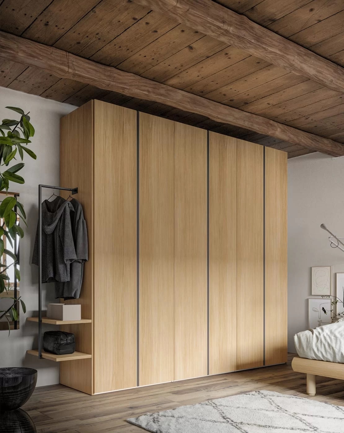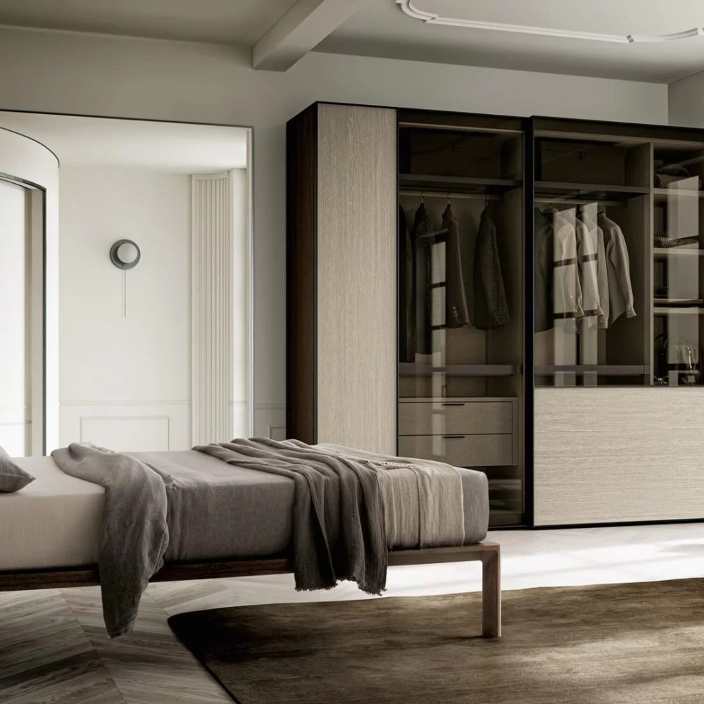 Completa la tua camera da letto con armadi su misura, disponibili con ante battenti o scorrevoli, e comodini eleganti e funzionali. Scegli tra una varietà di materiali e finiture per creare la tua camera da letto ideale.
